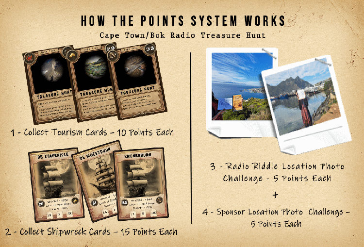In the Cape Town/Bok Radio Treasure Hunt, it’s not just about being the first to find the treasure – it’s also about earning points along the way!